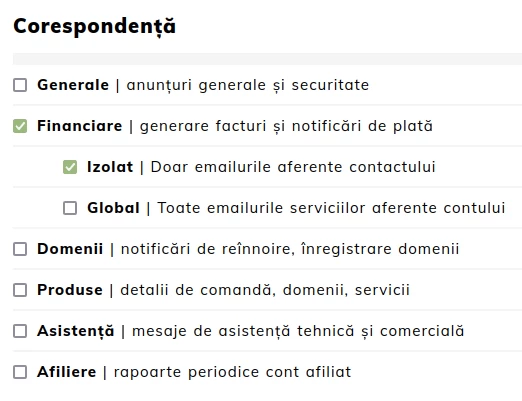 - Globale meldingen (alle financiële e-mails van het account worden verzonden)