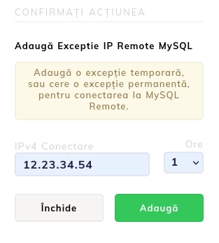 Momenteel is de functie voor het toevoegen van IP in remote MySQL alleen toegestaan voor gedeelde pakketten, dus als u het toevoegen op een VPS wilt, moet u contact opnemen met de technische afdeling van Hostico.